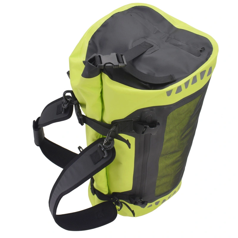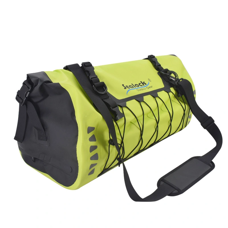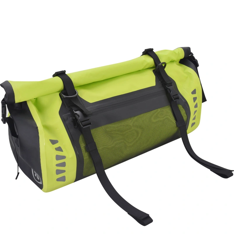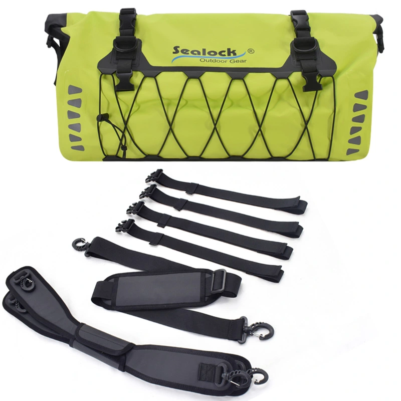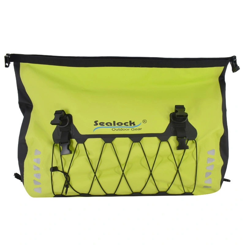 Bolsa impermeável para assento traseiro da motocicleta, à prova d'água, à prova de poeira e à prova de intempéries, feita de material de PVC forte e durável, perfeitamente soldada, 100% à prova d'água e fácil de limpar. Não se preocupe com a chuva e a neve que molham sua bagagem. Se você for dirigir por longas distâncias, nosso material de bolsa à prova d'água SEALOCK é mais durável para tornar seus itens de viagem mais seguros. Logotipos refletivos são adicionados em ambos os lados para melhorar a visibilidade noturna. É mais propício para uma condução segura.