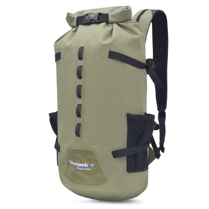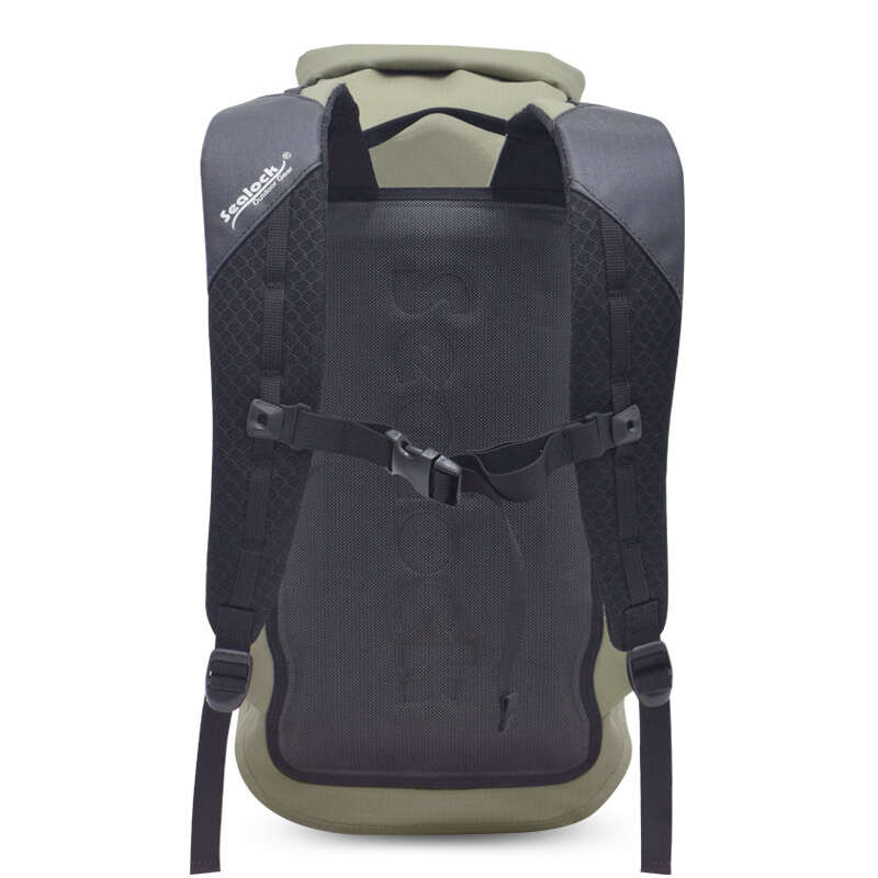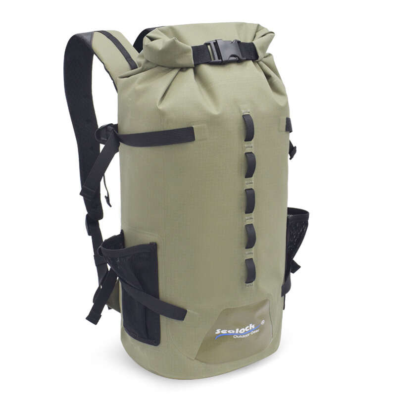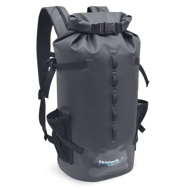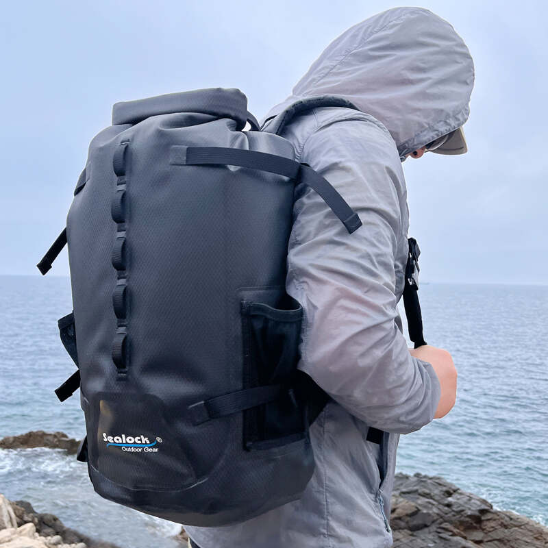 Esta mochila de fechamento do topo do rolo é construída com tecido impermeável profissional da TPU e seu selo dobrável aumenta o efeito à prova d'água. Além disso, ele está equipado com um poderoso sistema de suspensão externo no exterior para suspender itens externos. No interior, existem compartimentos para iPad, bolsos de malha de armazenamento e compartimentos com zíper, permitindo um armazenamento mais racional de pertences.